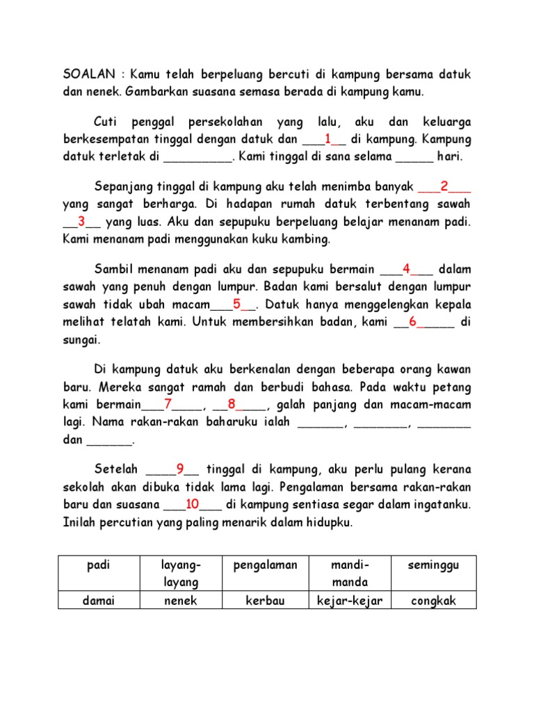 Contoh Karangan dalam Bahasa Inggris tentang Kampung Halaman. Saya berasa gembira kerana dapat melawat ke kampung. Insyak Karangan Bahasa Arab SPM.